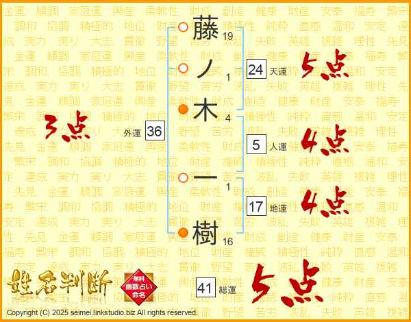 藤ノ木一樹さんの天運は24画の5点!