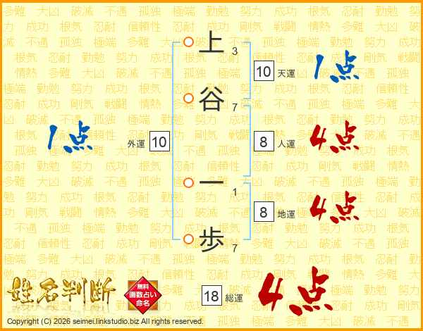 上谷一歩さんの総運は18画の4点!