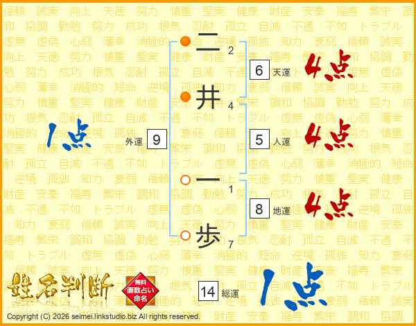二井一歩さんの総運は14画の1点!