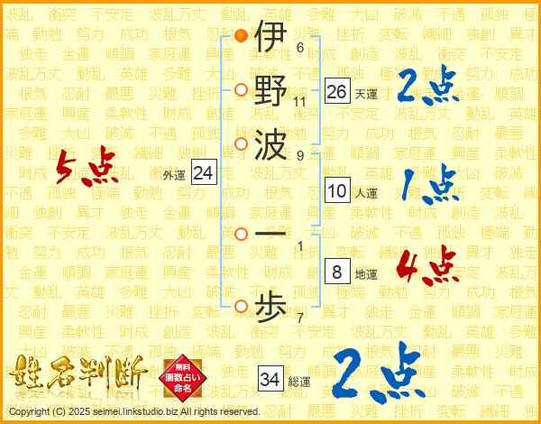 伊野波一歩さんの天運は26画の2点!