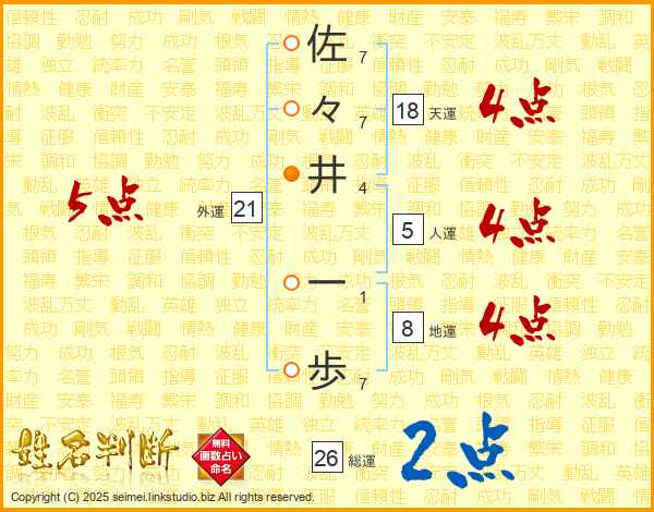 佐々井一歩さんの総運は26画の2点!