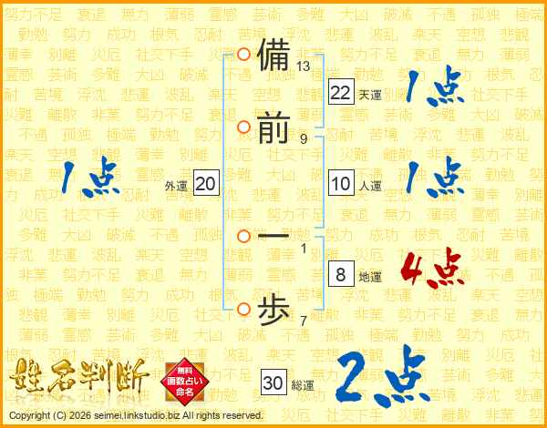 備前一歩さんの総運は30画の2点!