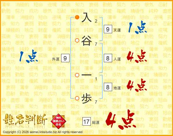 入谷一歩さんの総運は17画の4点!