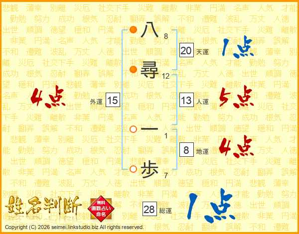 八尋一歩さんの総運は28画の1点!