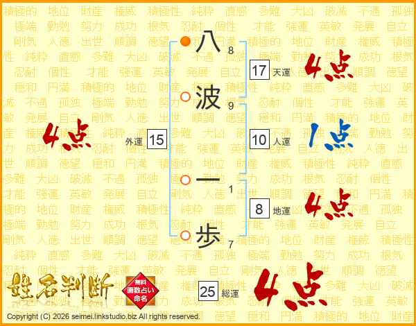 八波一歩さんの総運は25画の4点!