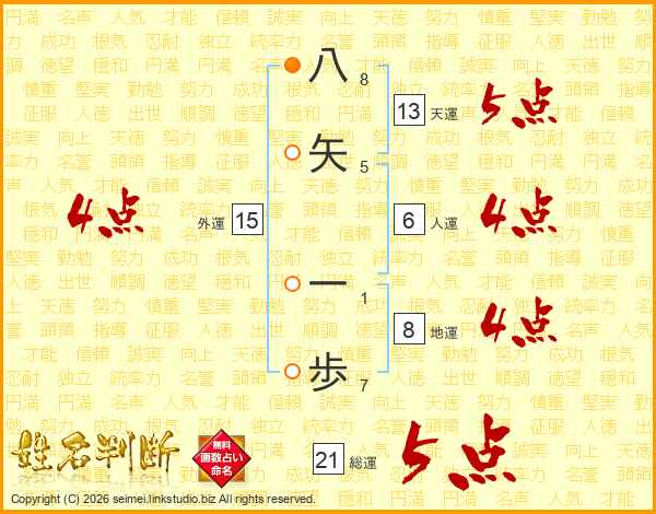 八矢一歩さんの天運は13画の5点!