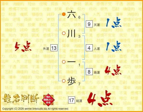 六川一歩さんの総運は17画の4点!