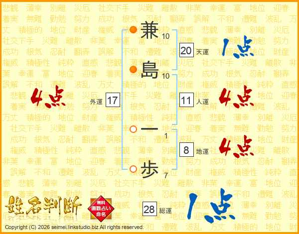 兼島一歩さんの人運は11画の4点!