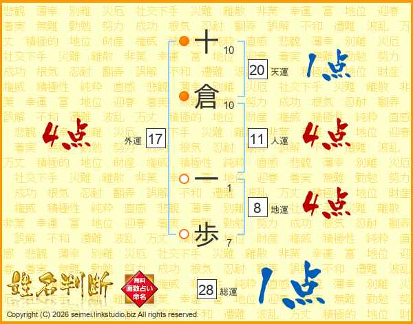 十倉一歩さんの人運は11画の4点!