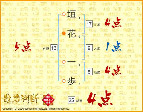垣花一歩さんの総運は25画の4点!