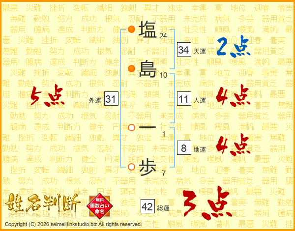 塩島一歩さんの人運は11画の4点!