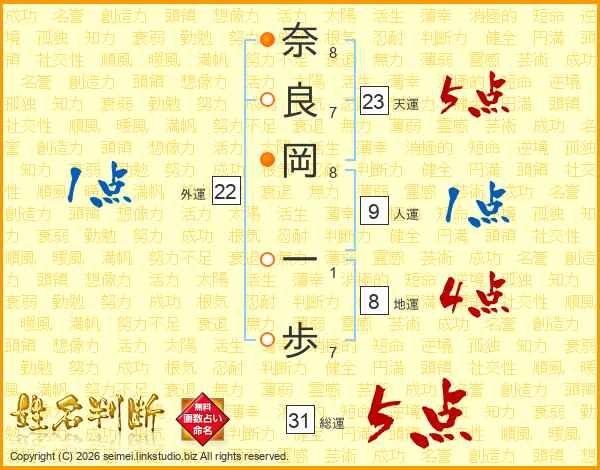 奈良岡一歩さんの天運は23画の5点!