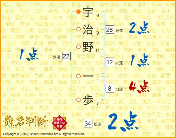 宇治野一歩さんの天運は26画の2点!
