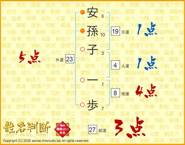 安孫子一歩さんの総運は27画の3点!