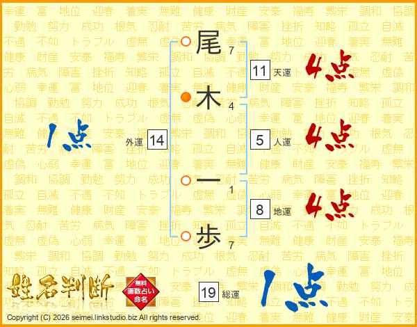 尾木一歩さんの総運は19画の1点!