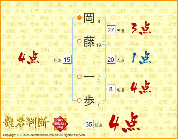 岡藤一歩さんの総運は35画の4点!