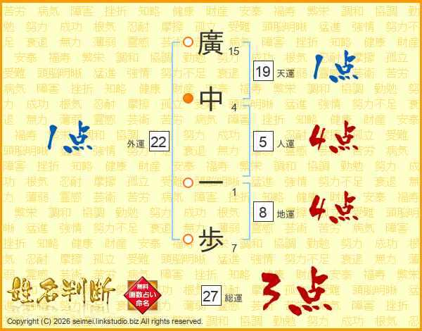 廣中一歩さんの天運は19画の1点!