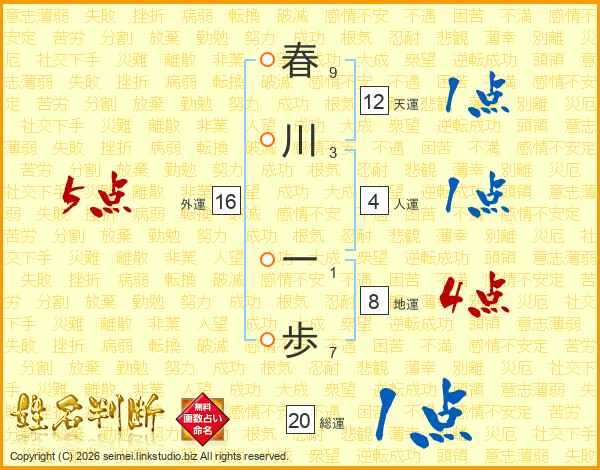 春川一歩さんの総運は20画の1点!