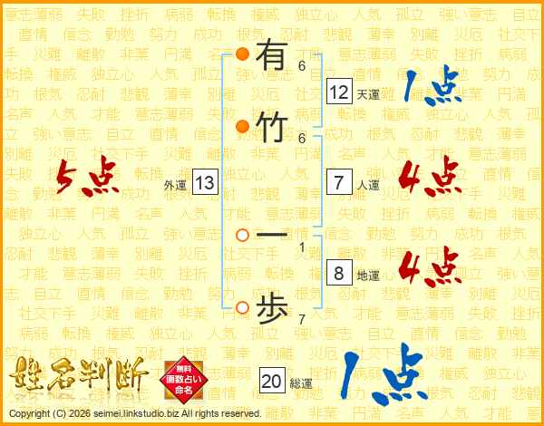 有竹一歩さんの人運は7画の4点!