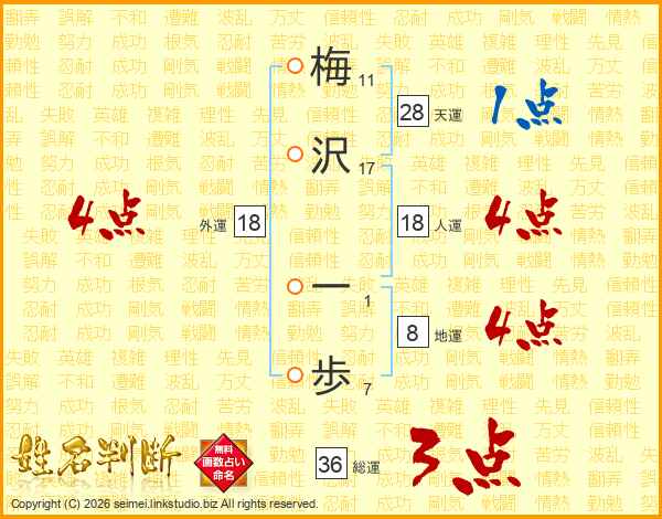 梅沢一歩さんの人運は18画の4点!