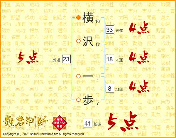 横沢一歩さんの総運は41画の5点!