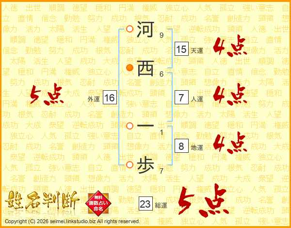 河西一歩さんの総運は23画の5点!