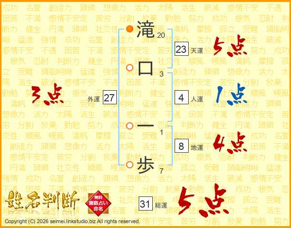 滝口一歩さんの天運は23画の5点!