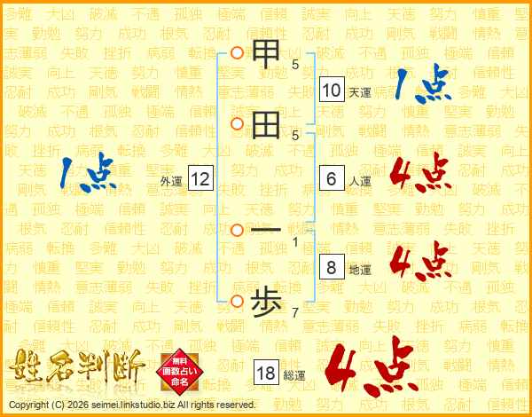 甲田一歩さんの総運は18画の4点!