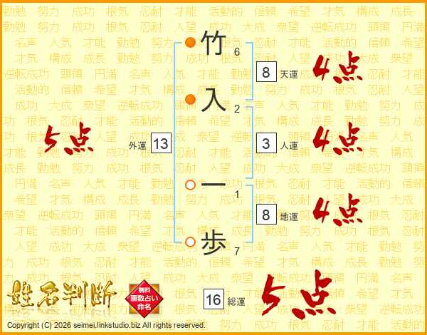 竹入一歩さんの総運は16画の5点!