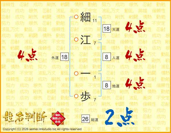 細江一歩さんの総運は26画の2点!