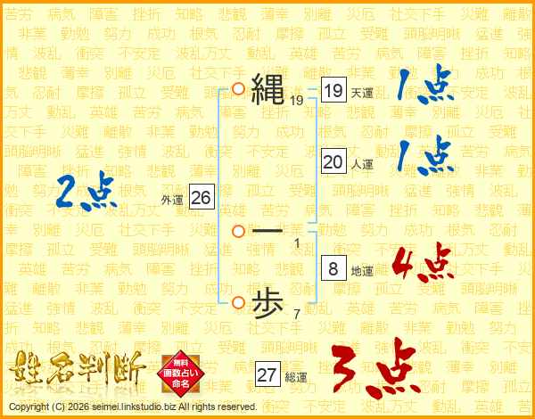 縄一歩さんの人運は20画の1点!