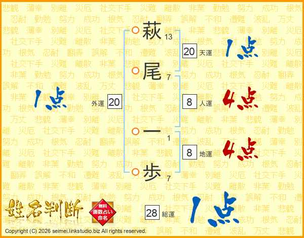 萩尾一歩さんの総運は28画の1点!