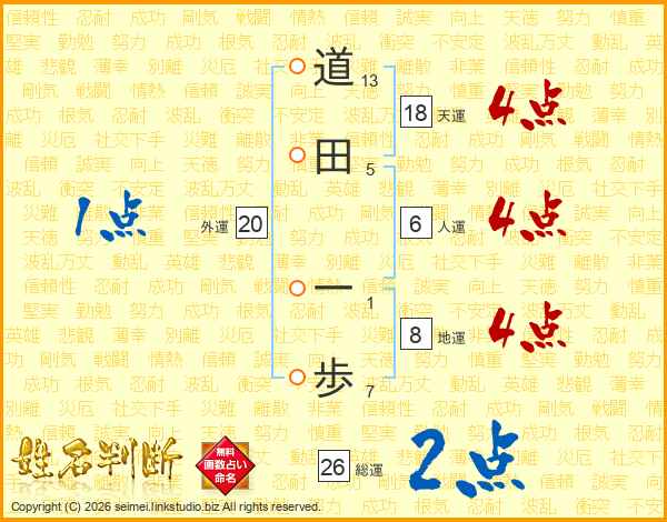 道田一歩さんの総運は26画の2点!