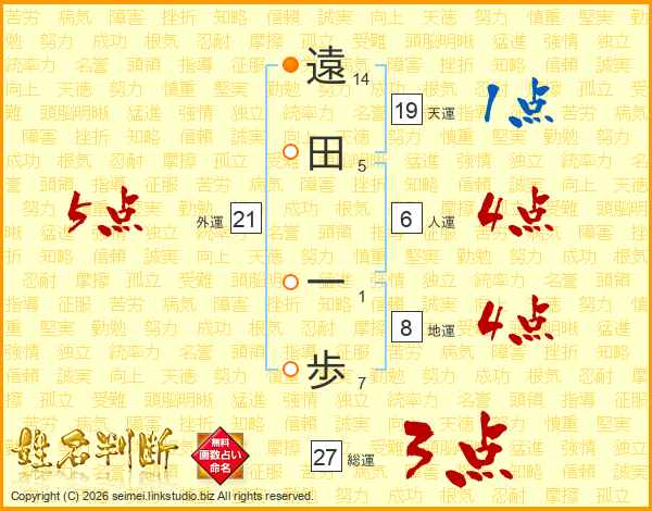 遠田一歩さんの天運は19画の1点!