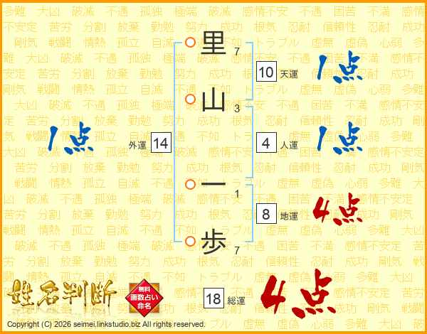 里山一歩さんの総運は18画の4点!