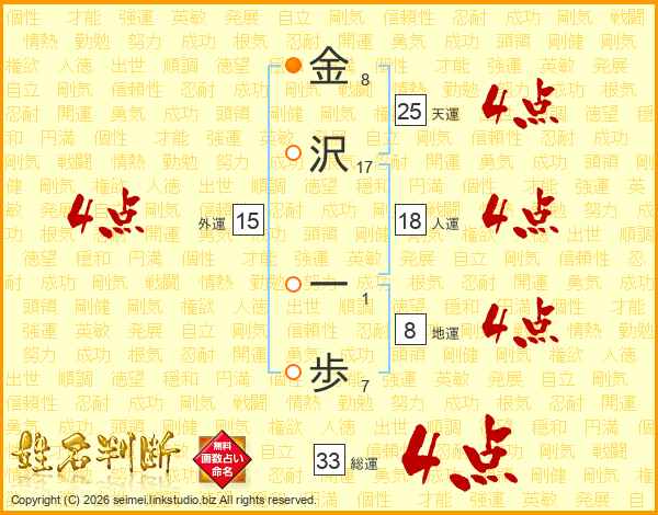 金沢一歩さんの総運は33画の4点!