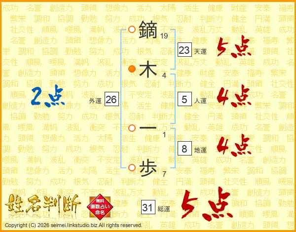 鏑木一歩さんの総運は31画の5点!