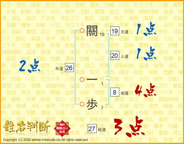 關一歩さんの人運は20画の1点!