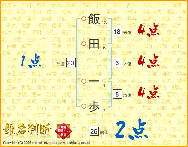 飯田一歩さんの総運は26画の2点!
