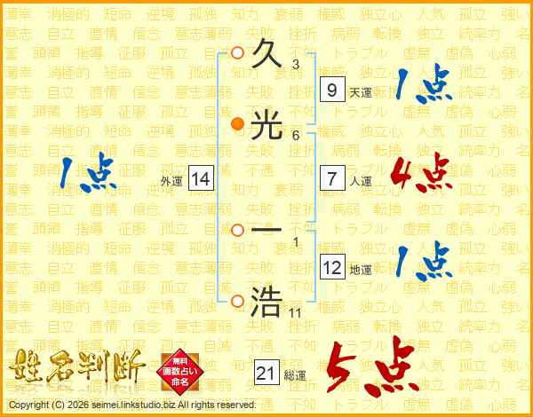 久光一浩さんの総運は21画の5点!