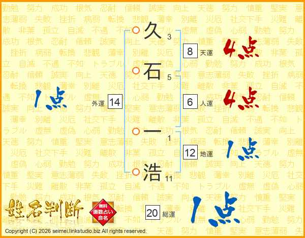 久石一浩さんの総運は20画の1点!