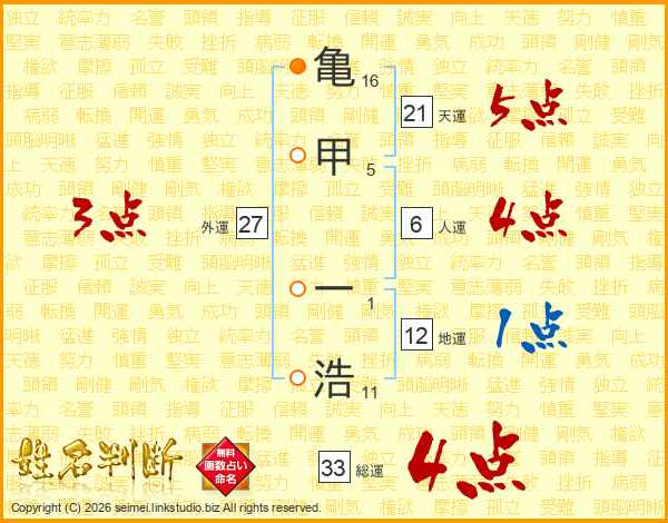 亀甲一浩さんの総運は33画の4点!