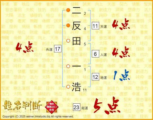 二反田一浩さんの天運は11画の4点!