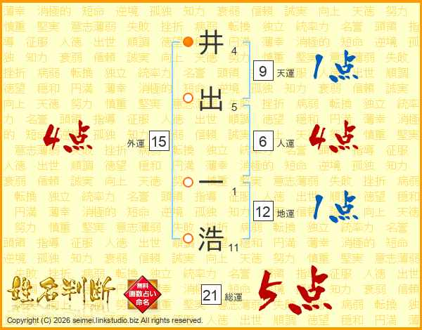 井出一浩さんの総運は21画の5点!