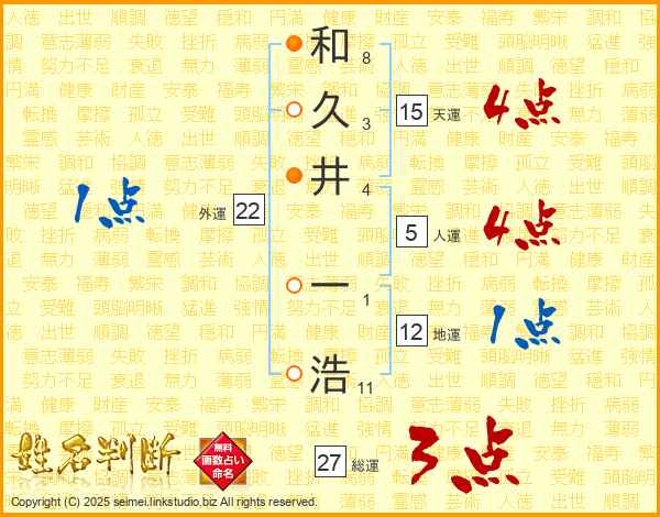 和(8画)久(3画)井(4画) 一(1画)浩(11画)
