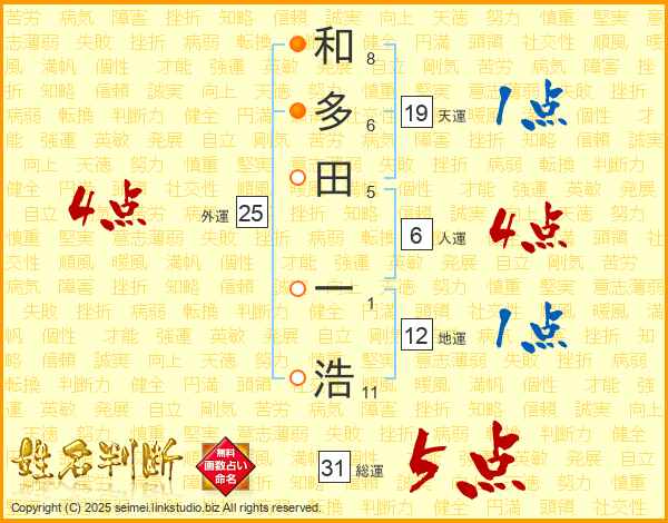 和多田一浩さんの総運は31画の5点!