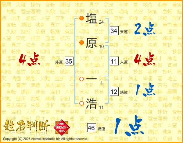 塩原一浩さんの人運は11画の4点!