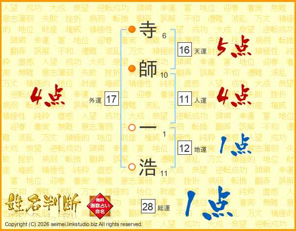 寺(6画)師(10画) 一(1画)浩(11画)