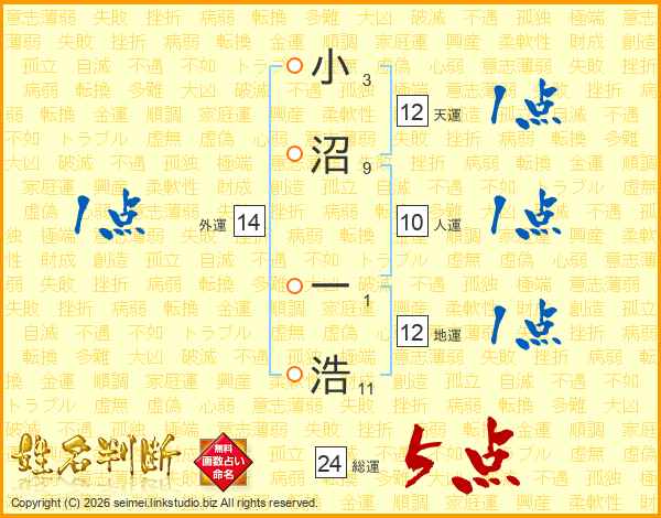 小沼一浩さんの総運は24画の5点!