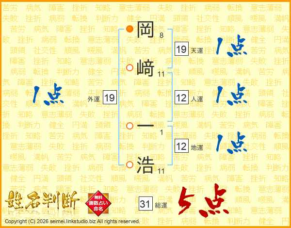 岡﨑一浩さんの総運は31画の5点!